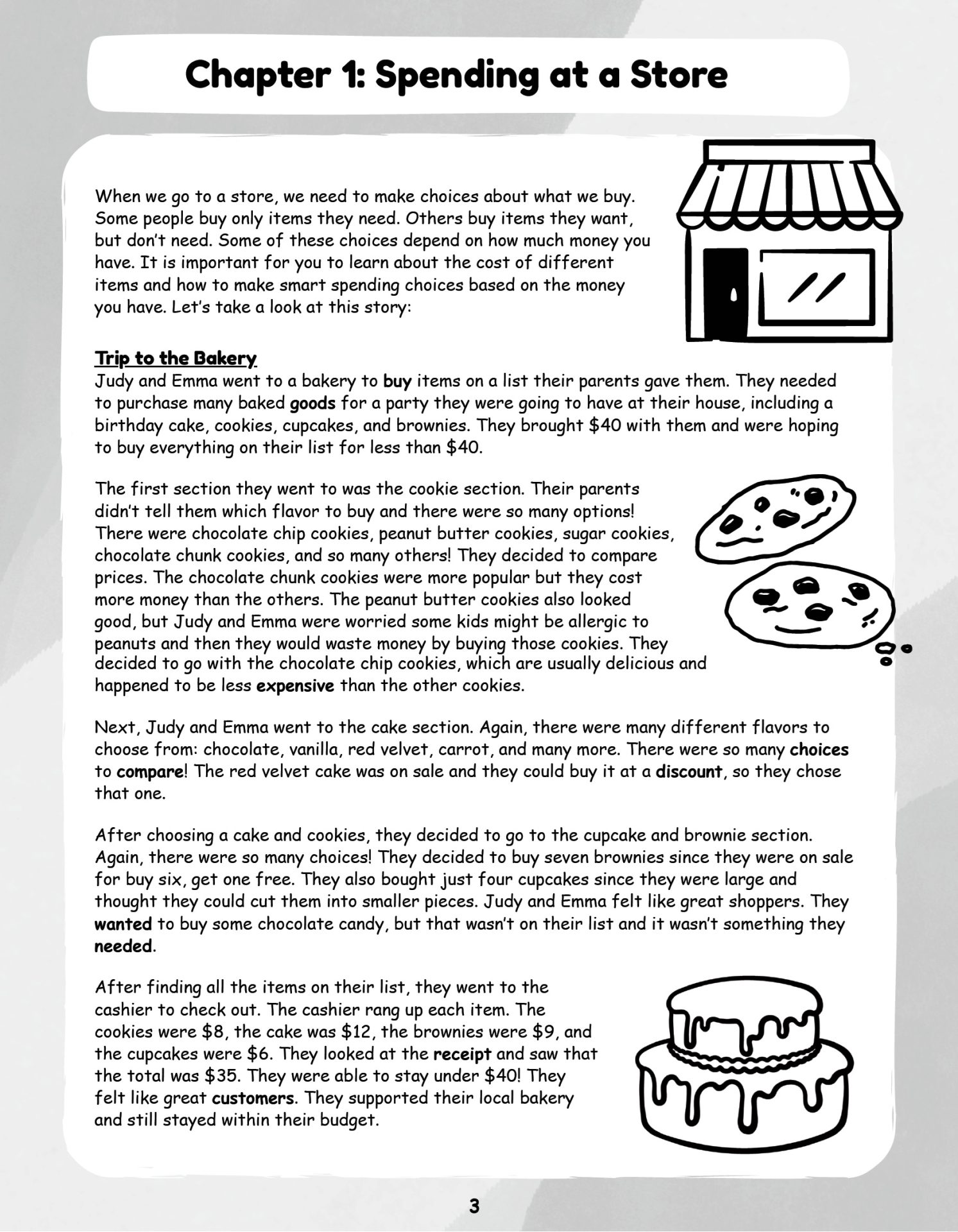 Everyday math skills are key for success in school and in life! In this workbook, students will learn important math life skills, including how to spend wisely when shopping, how to buy groceries on a budget, how to earn money, how to save money, and so much more!